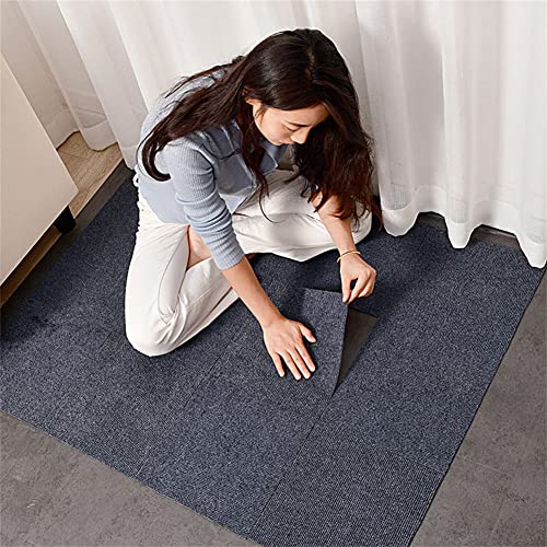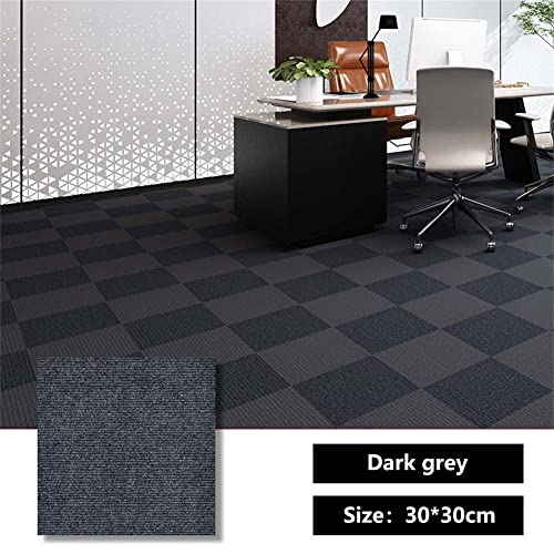 10 stuks zelfklevende gestreepte tapijttegels, antislip, wasbaar, duurzaam, slijtvast, voor kantoor, slaapkamer, woonkamer, badkamer, keuken (donkergrijs, 30 x 30 cm)