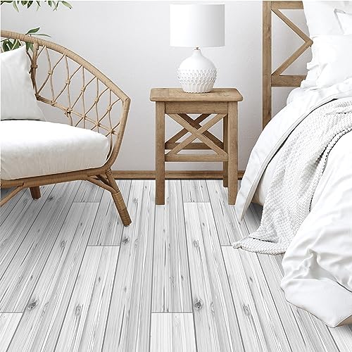AMOYUN 4 stuks witte houtnerf muursticker, zelfklevende vloertegels behang vloer muur tegel overdracht sticker pelstok film backsplash tegel voor keuken doe-het-zelf waterdichte muur woondecoratie 15 x 90 cm