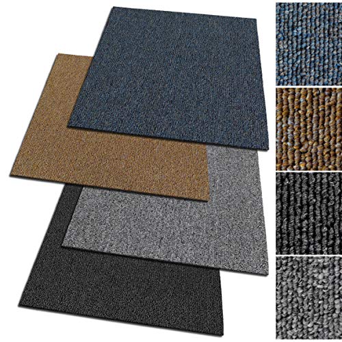 Meisterei Floordirekt, Moskou design tapijttegels 50×50 cm, zelfliggend, duurzaam vloerkleed, vloerbedekking met hoogwaardige lussenvloer, antistatisch met bitumen rug, (antraciet)