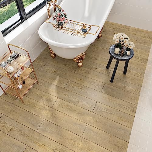 Specification: Yullpaper Klick Vinylvloeren, zelfklevende pvc-vloerbedekking, houtlook, tegelstickers voor badkamer, keuken, vloer, 24 stuks, 90 x 15 cm, kleefverloop, pvc-tegels, zelfklevend, waterdicht,